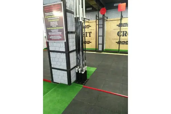 Підставка для вертикального зберігання грифів чудовий варіант для клубів, де немає можливості кріпити кронштейни до стін. З цією підставкою ви зможете компактно розмістити 9 грифів і вони займуть мінімум місця. Підставка для грифів виготовлена з листа металу, на який наварені труби для утримання грифів. Діаметр труб 60мм, так що ви можете бути впевнені в тому, що рукави грифів після довгого використання будуть в ідеальному стані.